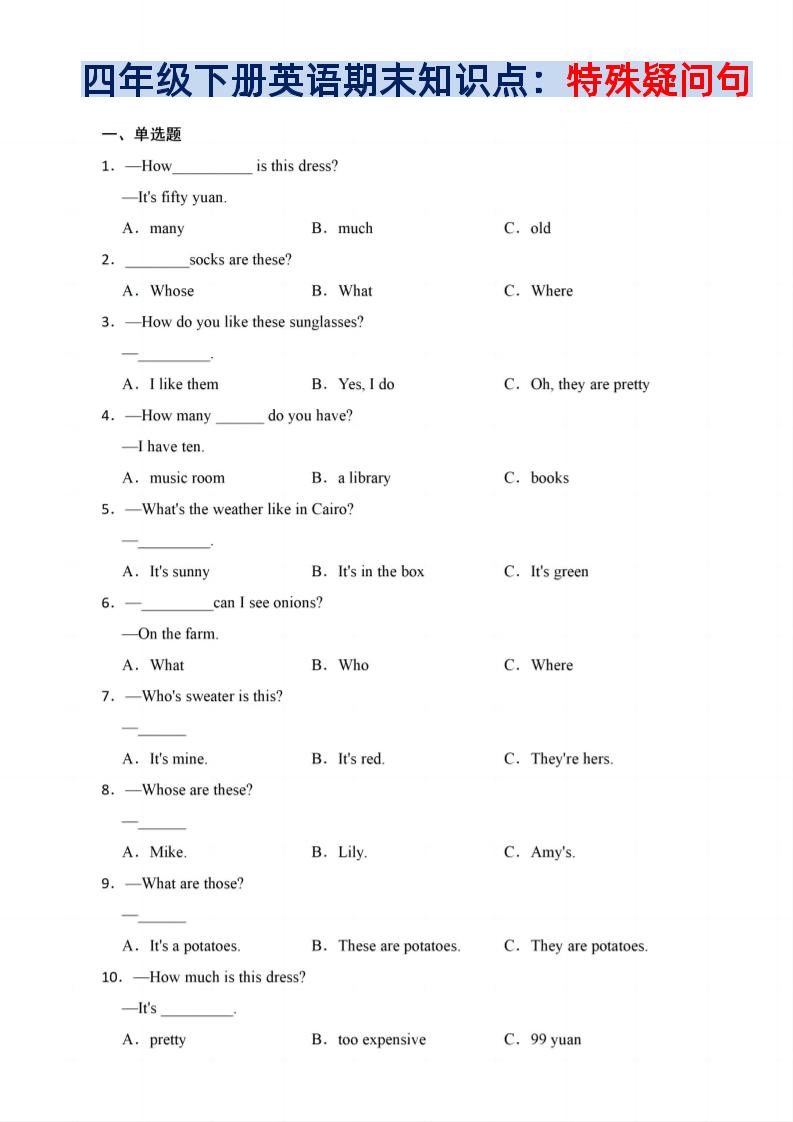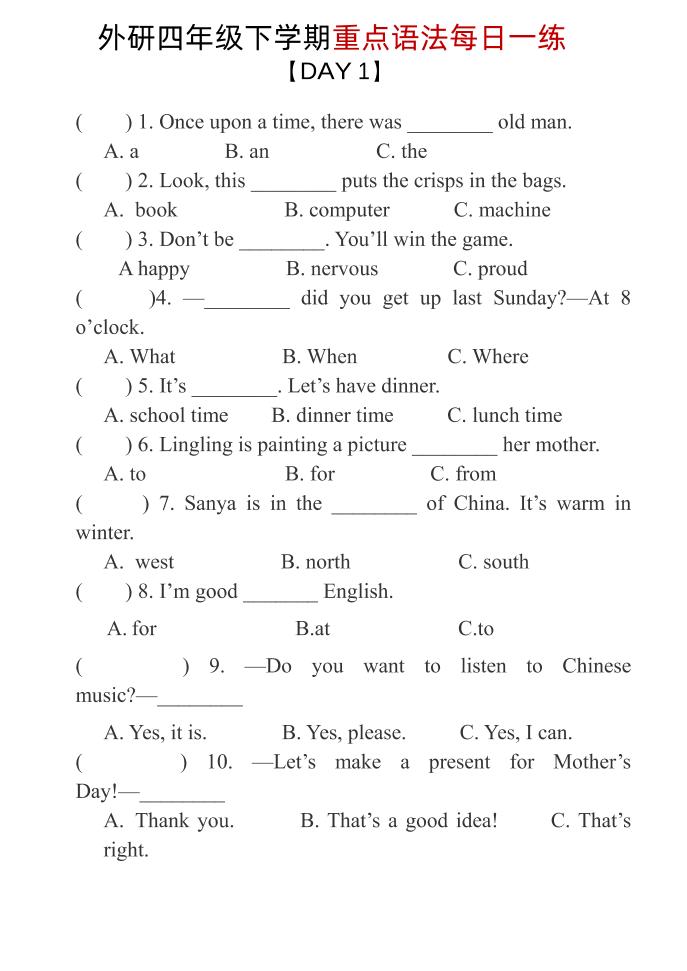 四下人教PEP版英语【期末真题测试卷(14套)】