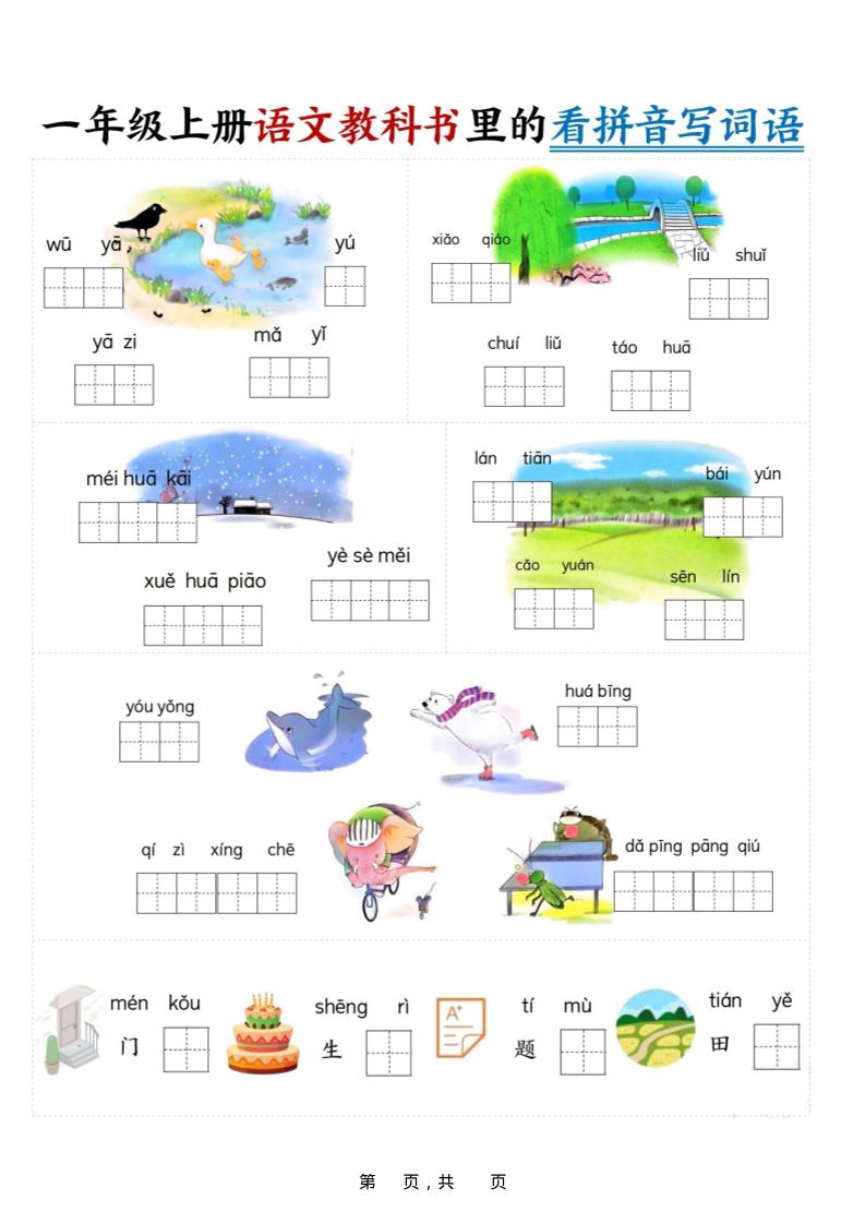 首页 > 全部 > 未知 新一上语文教科书里的看拼音写词语(16页)
