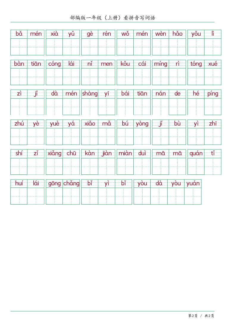 首页 > 全部 > 未知 一上语文看拼音写词语