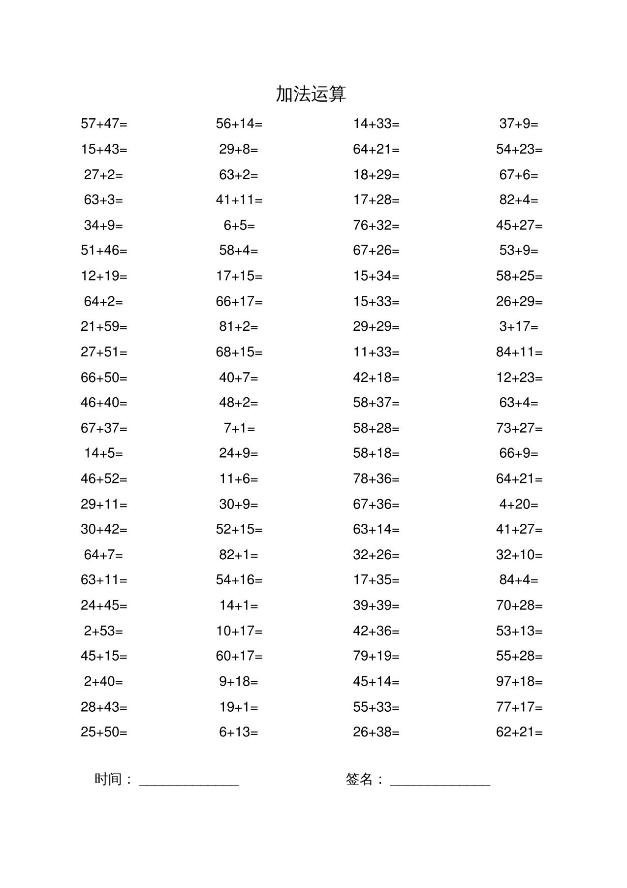 二升三数学暑假作业-加减乘除混合运算口算题60张二下