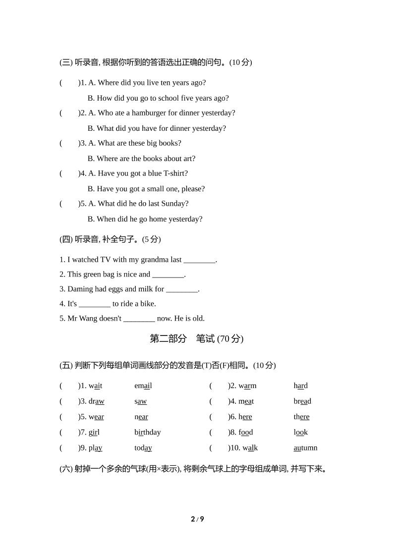 首页 > 全部 > 五英下 > 外研版2024-2025学年英语五年级下册第二学期期中考试(A)卷