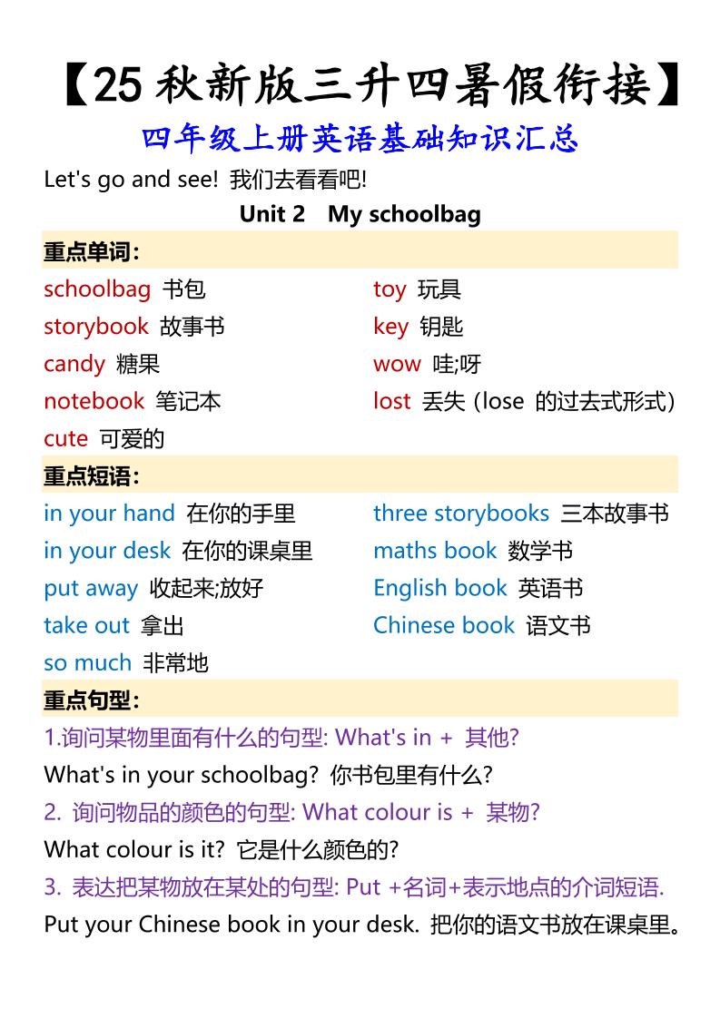 首页 > 全部 > 四英上 > 【2025秋新版】四年级上册英语基础知识汇总