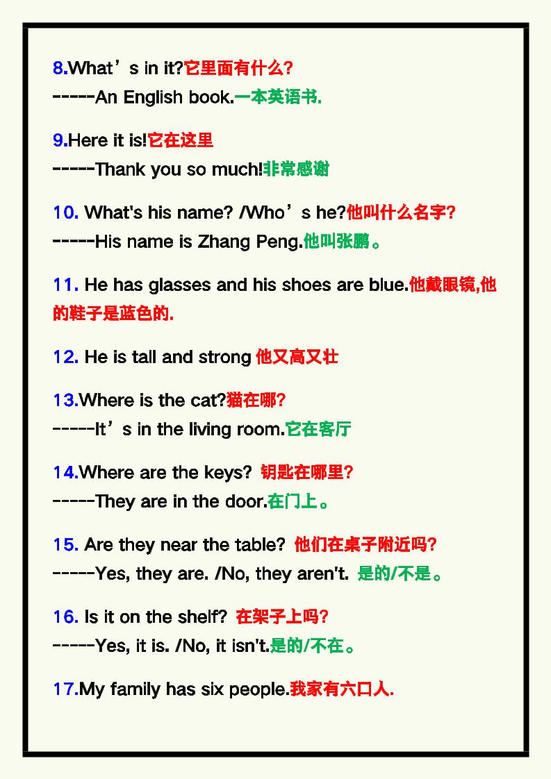 【2025秋新版】四年级英语上册《期末必考句型》归类!
