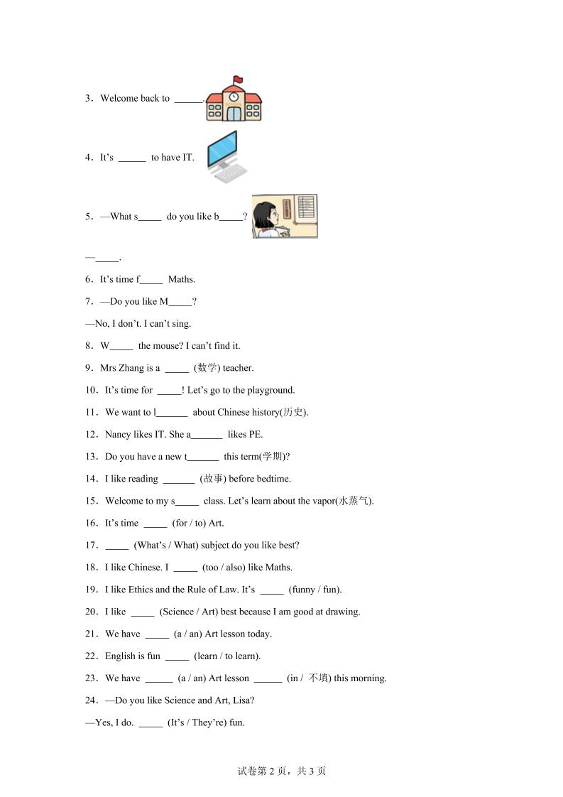 首页 > 全部 > 四英上 > 2025-2026学年译林版(三起)(2024)英语四年级上册Unit1Ourschoolsubjects词汇(单元测试)