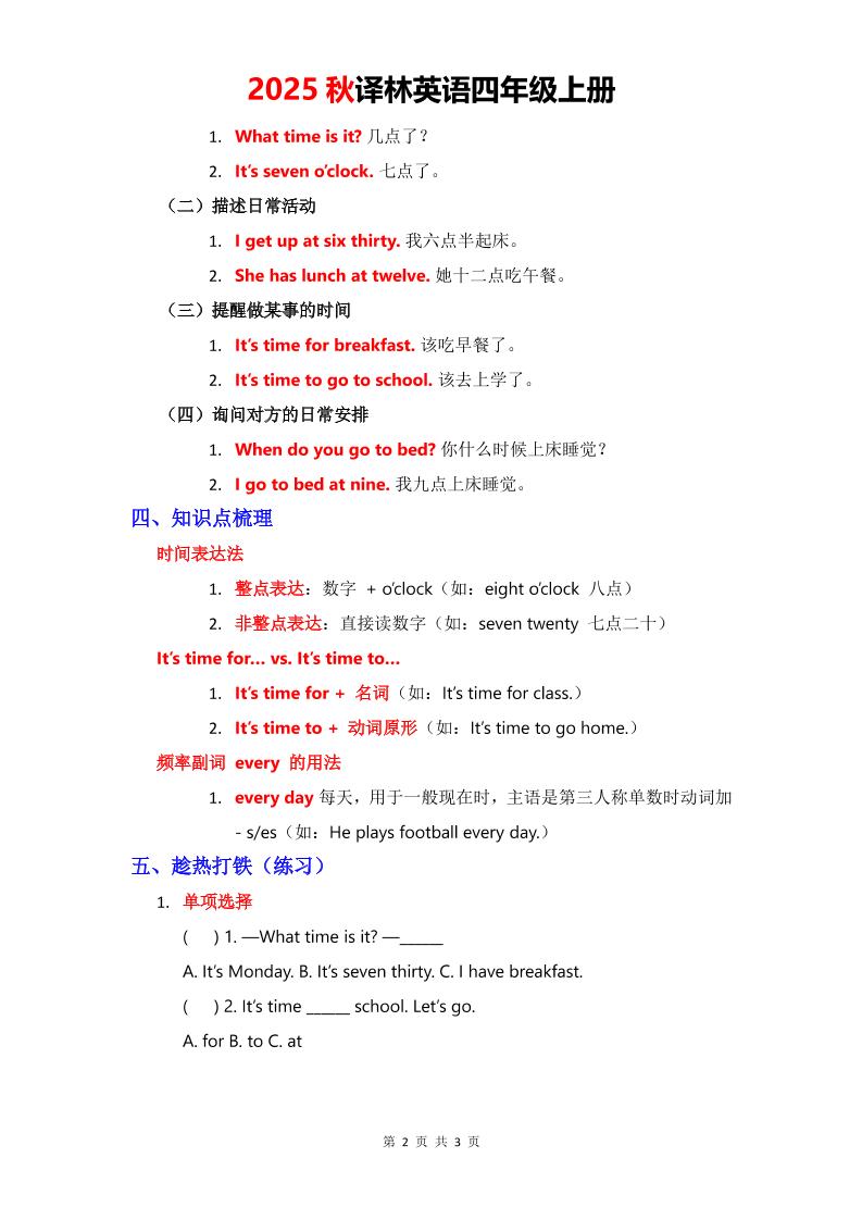 首页 > 全部 > 四英上 > 2025秋译林英语四上Unit2知识清单
