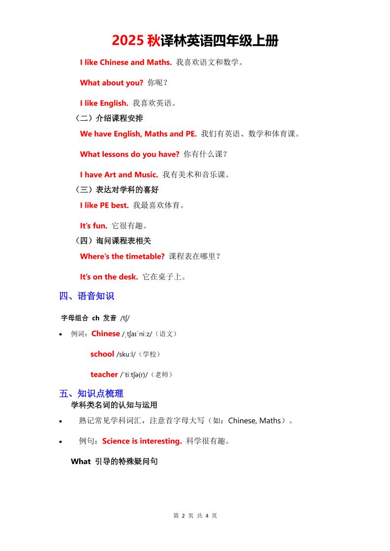 首页 > 全部 > 四英上 > 2025秋译林英语四上Unit1知识清单