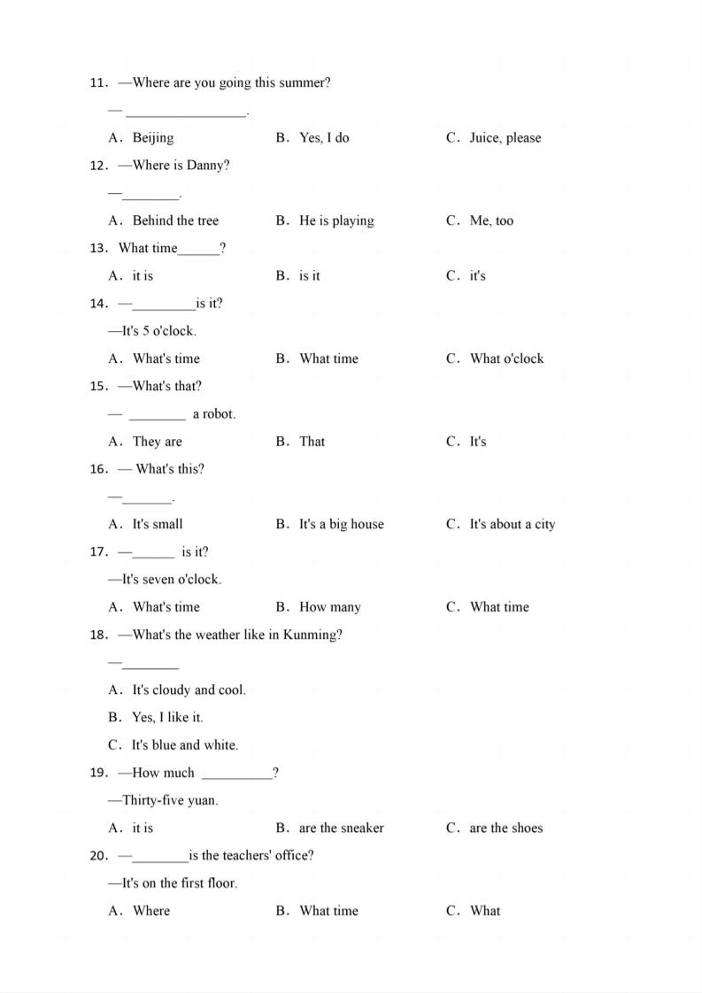 首页 > 全部 > 四英下 > 四年级下英语期末疑问句知识点训练《PEP版》